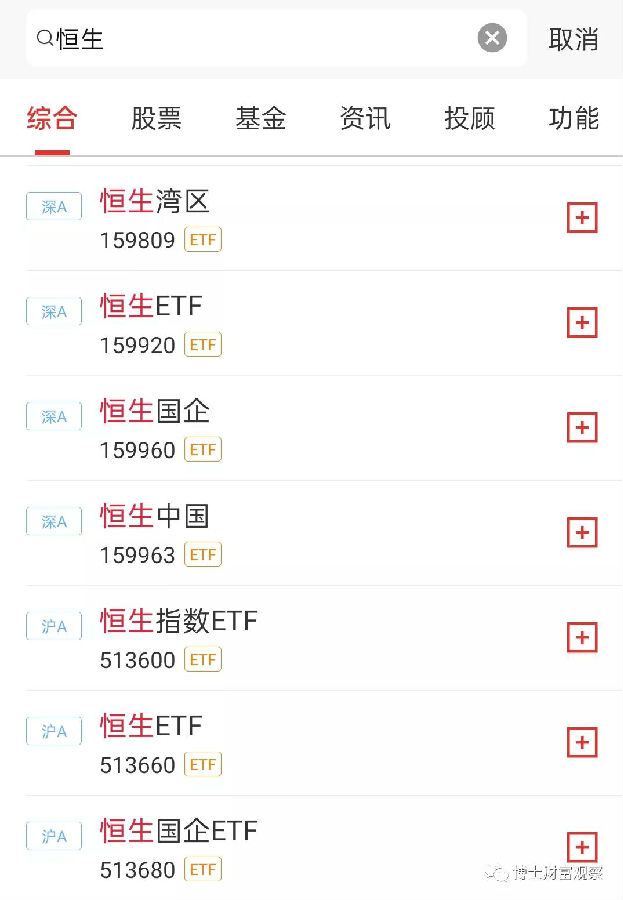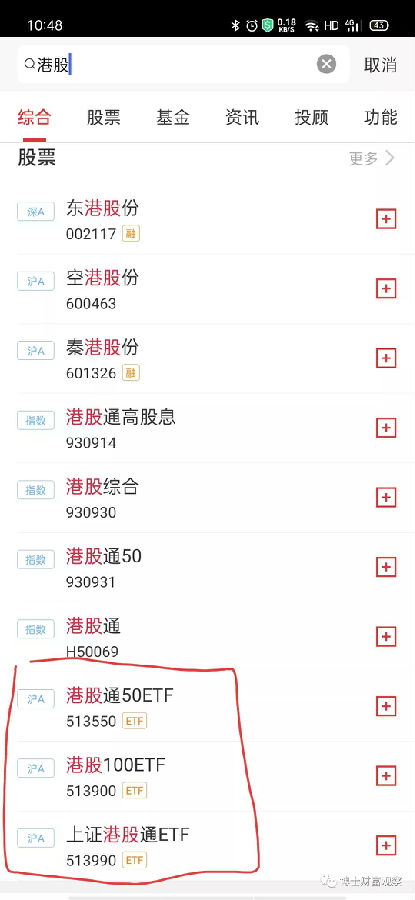 上圖是“港股”關鍵字搜出來的,可以看到,是ETF基金的,只在最下方三個。