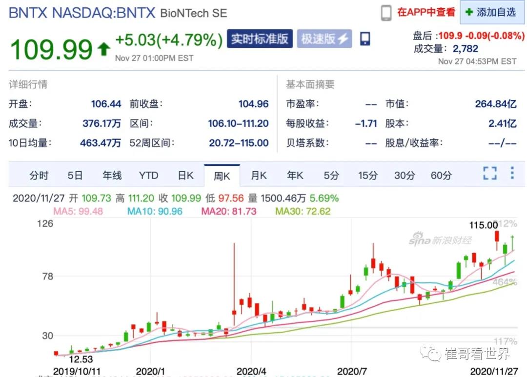 2008 年夫妻倆創立了 BioNTech,開發基於 mRNA 的癌症治療方法。不久之後,BioNTech就募集到了數億美元的資金,目前有超過1800名員工,主要分佈在德國柏林和美國麻省劍橋。如下圖所示,作為一家納斯達克上市公司,也是歐洲最大的醫藥獨角獸,BioNTech今年股價已經上漲了近四倍。