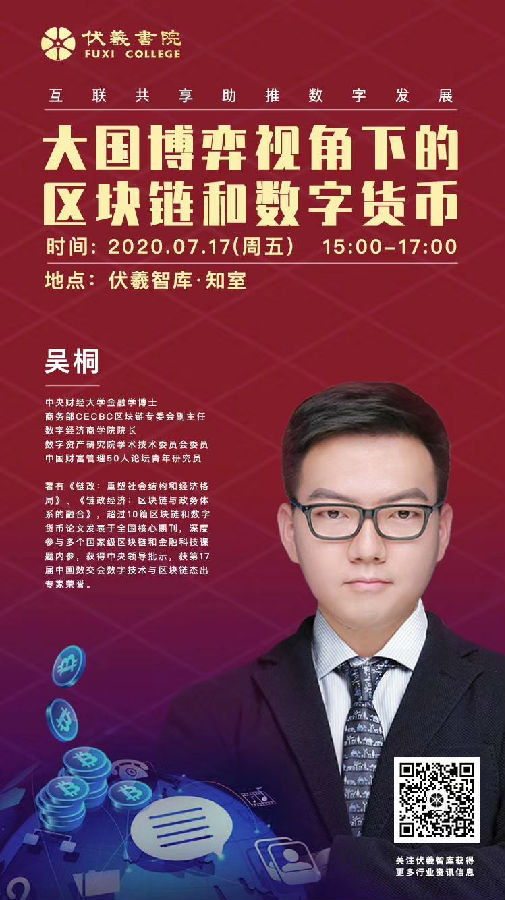 7月17日,吴桐博士受邀在伏羲智库做《大国博弈视角下的区块链和数字货币》的讲座