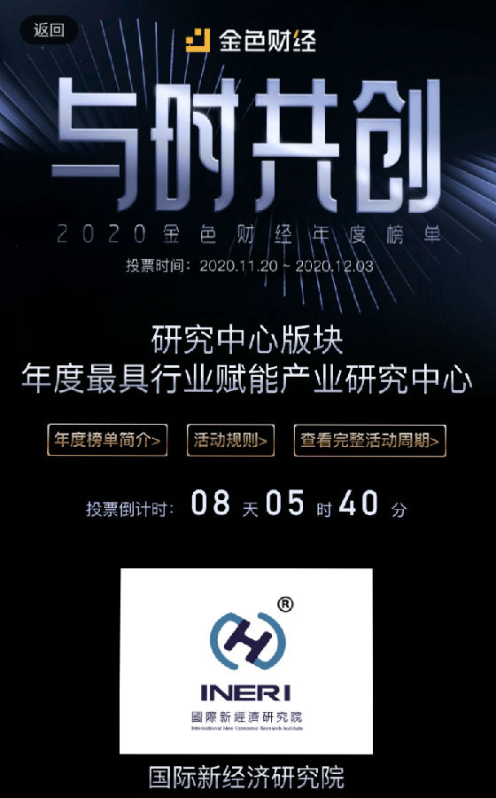 本機構參加由金色財經發起“與時共創·年度榜單徵集”。角逐最具行業賦能產業研究中心。該評選旨在表彰那些2020年度表現卓越、成長快速、勇於創新、突破價值、最具未來潛力的行業先鋒。