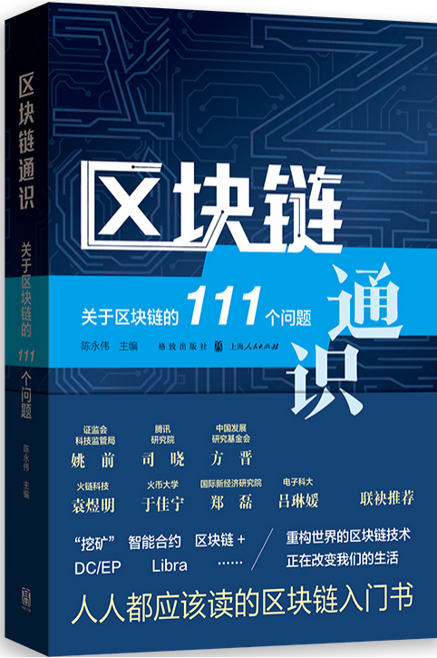 本機構高級顧問、學術委員會委員陳永偉主編的新書《區塊鏈通識:關於區塊鏈的111個問題》出版。