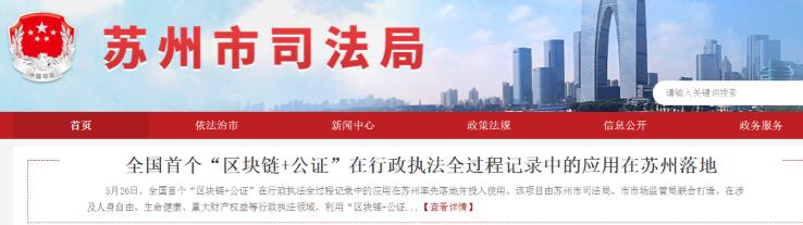 日前,由蘇州市司法局、市市場監督管理局聯合打造的全國首個“區塊鏈+公證”行政執法全過程記錄模式開始在蘇州的行政執法中應用,該模式有助於保證證據的真實可靠。實際上,蘇州市在“區塊鏈+公證”領域探索已久,具有較為雄厚的技術積累和實踐經驗。此前蘇州市曾落地全國首個區塊鏈公證搖號系統,並搭建了聯盟鏈“蘇州公證鏈”。