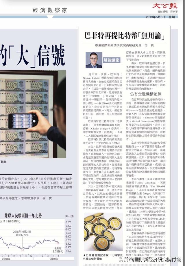 再次,巴菲特重仓银行股。伯克希尔哈撒韦公司持仓较大的公司包括美国银行、高盛、纽约梅隆银行和匹兹堡金融服务集团,富国银行、摩根大通等。上述银行目前大多依循传统金融的逻辑,即政府、央行具有铸币权的法币本位。而比特币是该体系的挑战者。