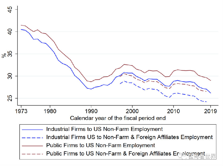 1973年,所有上市公司雇傭的員工人數,約占美國非農就業人口的42%左右。而到了2019年,這個數字已經下降到30%以下。也就是說,美國大約70%以上的就業人口,都在非上市公司裏工作。