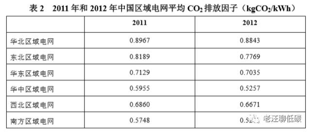 又叫電網用電排放因數或者耗電排放因數,它表示的是使用一度電產生的溫室氣體排放,其計算方法就是:整個電網的電廠總排放除以總電量得出。電網平均排放因數主要用於計算用電產生的排放,我們現在做碳核算用得就是它,所以它是最常用的排放因數。區域電網平均排放因數由國家氣候中心發佈,目前公佈了2010,2011和2012年的數據,其最新的數據如下: