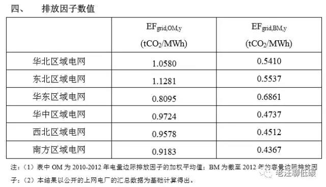 是指新能源電力設施發一度電時,對應減少的溫室氣體排放,其計算方法比較複雜,我以前的文章寫過這裏略過。電網基準線排放因數只要用於開發新能源電力減排專案(CCER、CER等)時計算專案的減排量。區域電網基準線排放因數由國家發改委氣候司發佈,從2006年開始每年更新,目前最新的排放因數為2014年的,其數據如下: