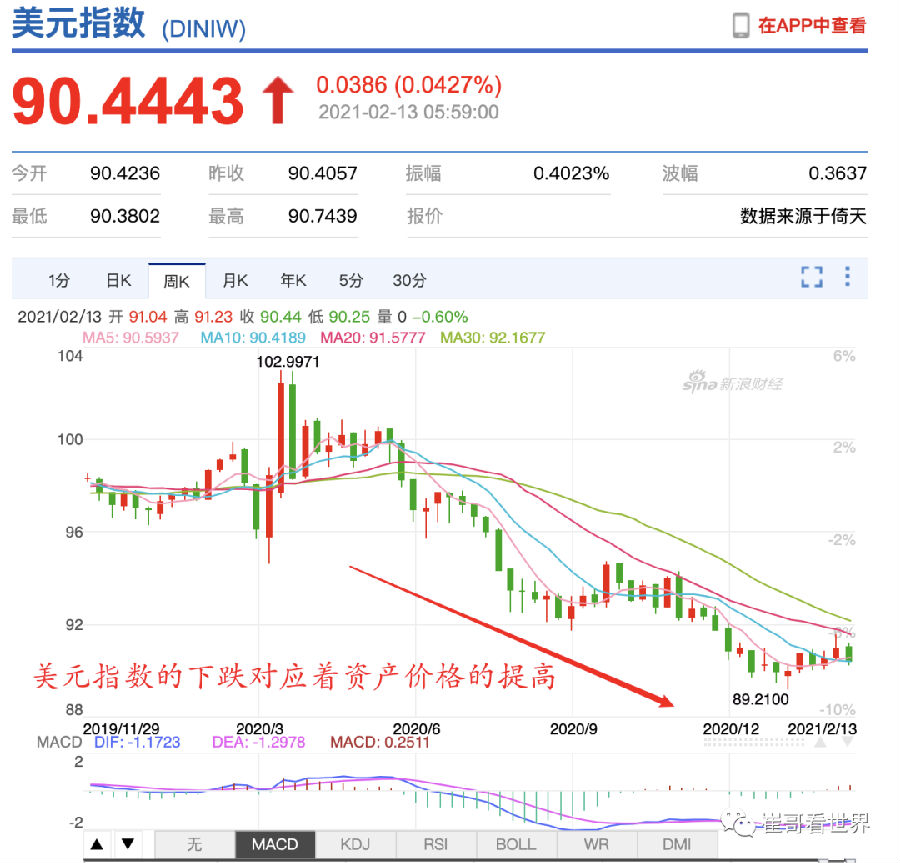 下麵是今年以來的美元指數,對應著資產價格的走高。
