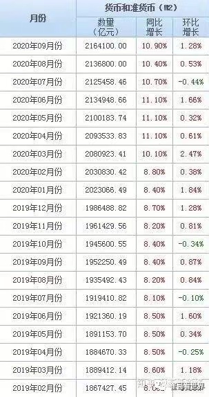 中國的放水規模也不遜色,中國的貨幣和准貨幣(M2)的增長如下表所示,同比增長率重新回到了10%以上。