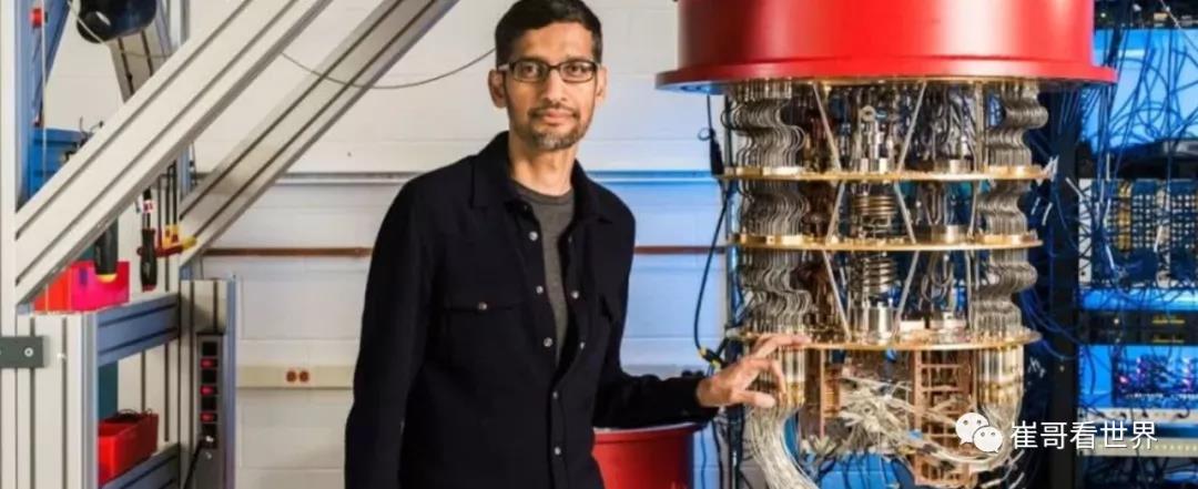 穀歌 CEO 桑達爾·皮查伊和聖芭芭拉實驗室中穀歌的量子電腦
