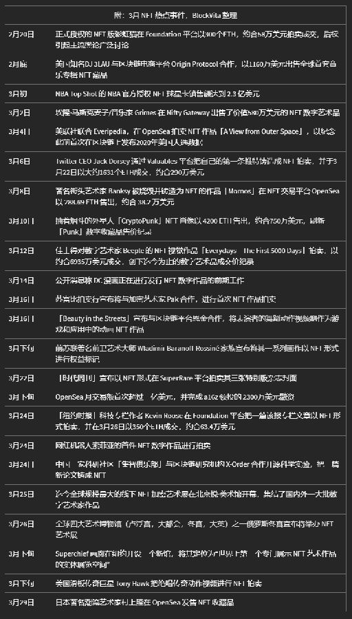 附:以下是區塊維他梳理的 NFT 3月熱點事件,如果需要瞭解 NFT 更多動態和更豐富的區塊鏈應用,可流覽官網 blockvita.com,或微信關注公號「區塊維他」